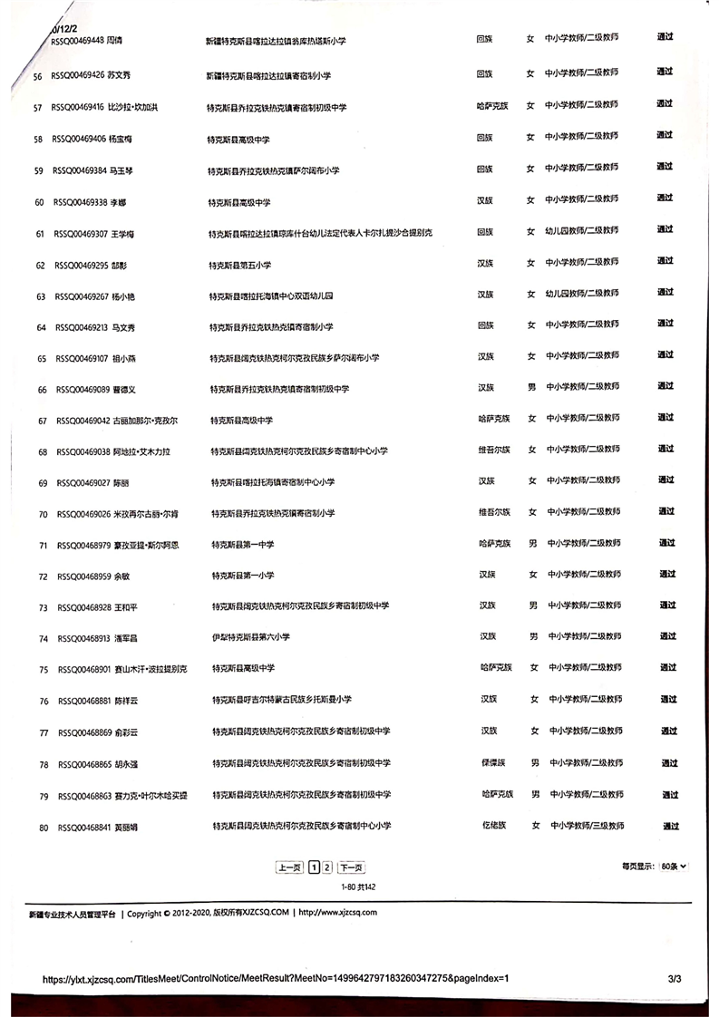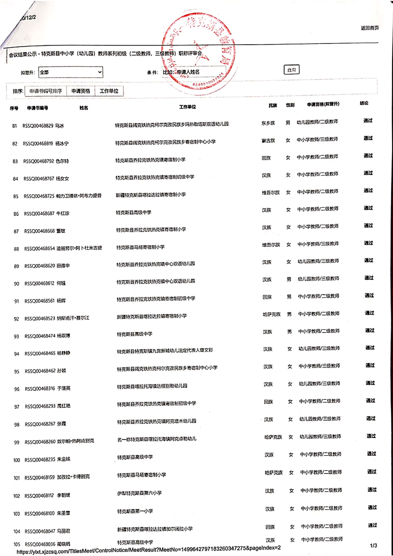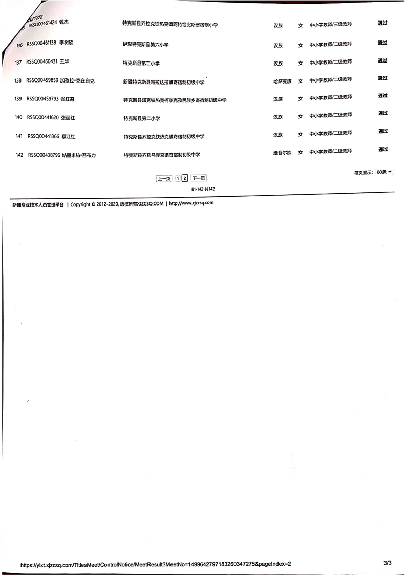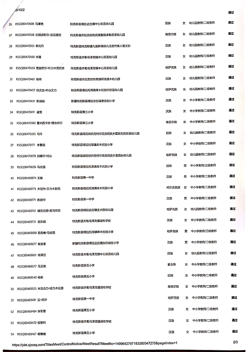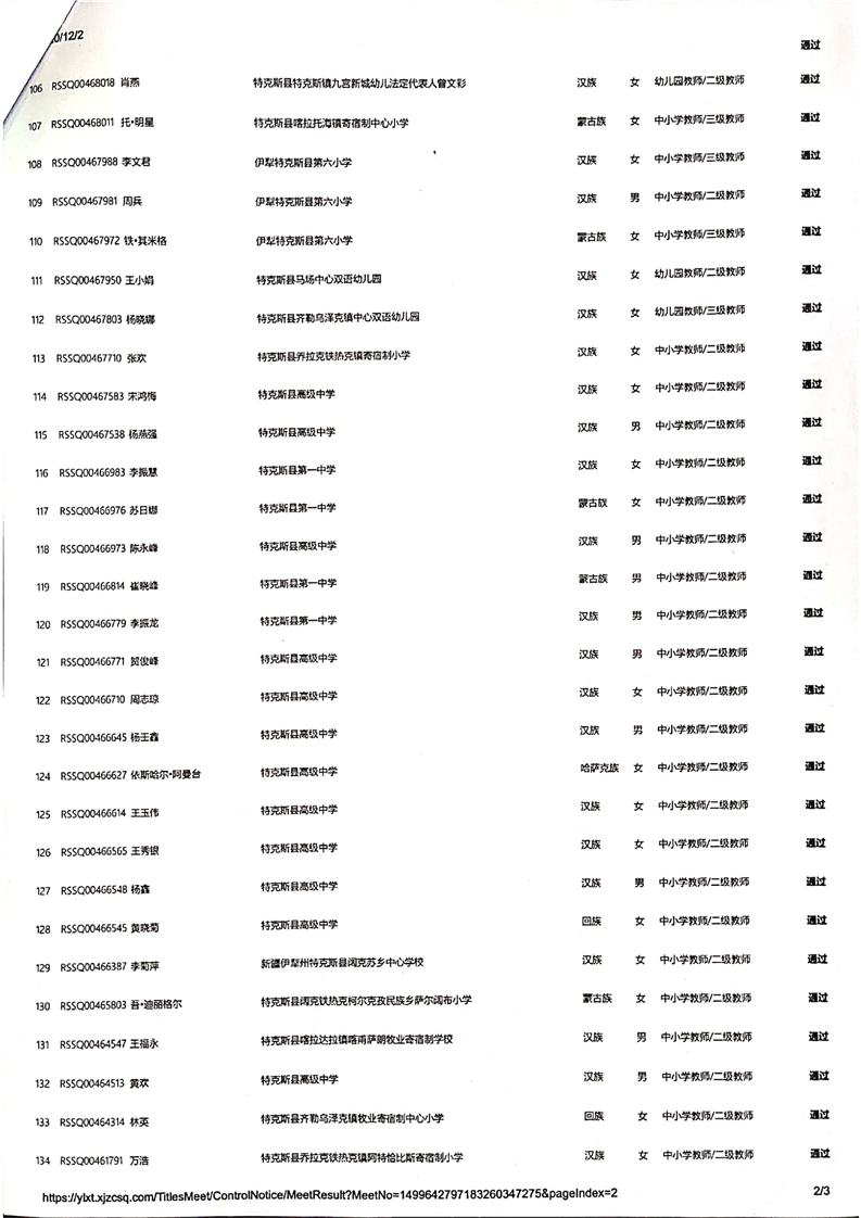 2020年度特克斯县一级、二级、三级教师职称评审结果