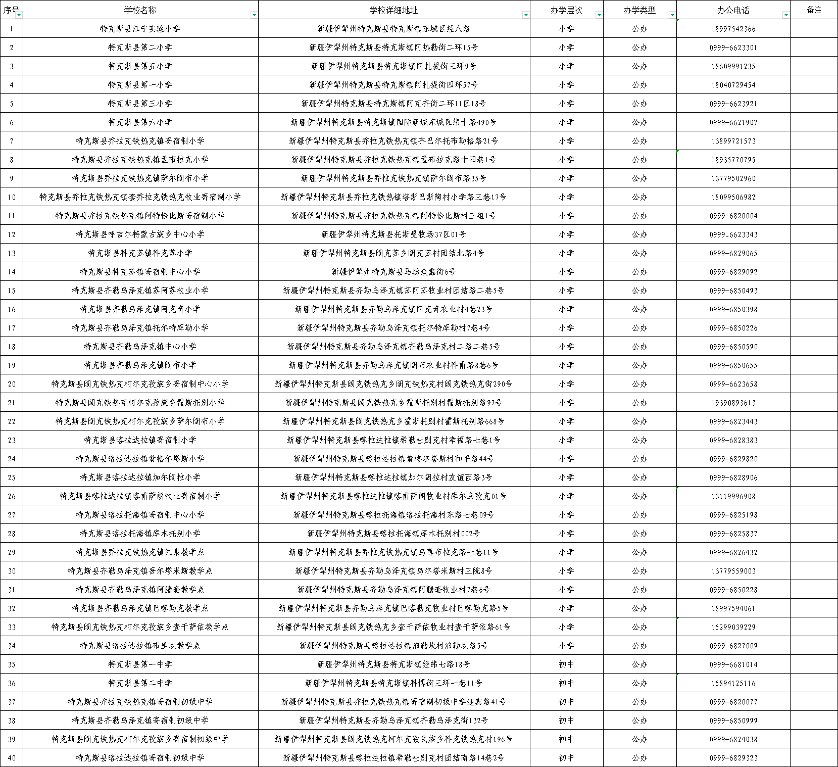特克斯县义务教育学校名录信息(2025-2026学年)