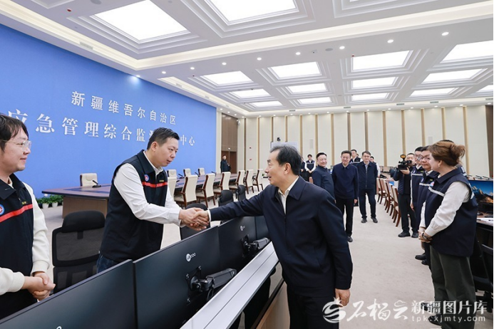 在自治区应急管理综合监测预警中心,陈小江详细听取节日值班值守、应急备勤、重点领域隐患排查整治情况。随后,自治区应急指挥部视频调度乌鲁木齐市、阿克苏地区、天池能源南露天煤矿等地安全生产、防灾减灾工作。陈小江向节日期间值守在一线的各族干部职工致以节日的慰问。他强调,要严格落实24小时值班和领导带班制度,紧盯危化品、消防、燃气、矿山、自然灾害等重点领域,强化监测预警与应急处置,认真落实各项防范措施,坚决守牢安全生产底线。